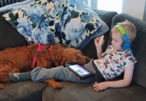 Seit die Labradoodle Hündin Elli bei ihm wohnt, hat er tolle Fortschritte gemacht. Sie beruhigt ihn in aufregenden Situationen, hilft ihm sich draußen aufzuhalten und gibt ihm dort Sicherheit – z.B. im Straßenverkehr. Bis vor Kurzem konnte Lias nicht allein schlafen, doch seit Elli bei ihm schläft, ist das kein Problem mehr.